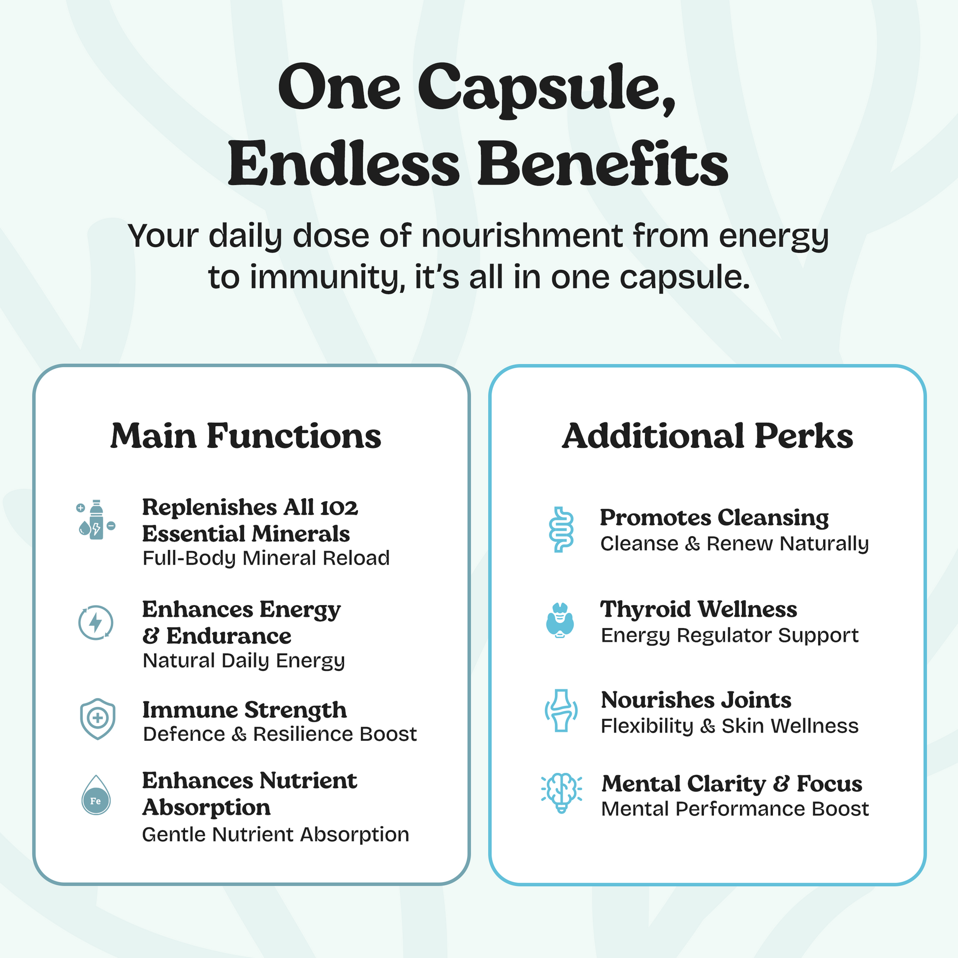 Burdock Root and Sea Moss naturally support the body's detox pathways, helping you cleanse and renew from within.